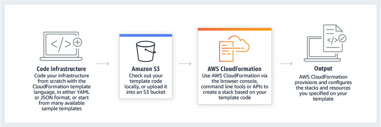- JSON 또는 YAML 형식의 템플릿을 사용하여 AWS 리소스를 모델링하고 프로비저닝할 수 있습니다.