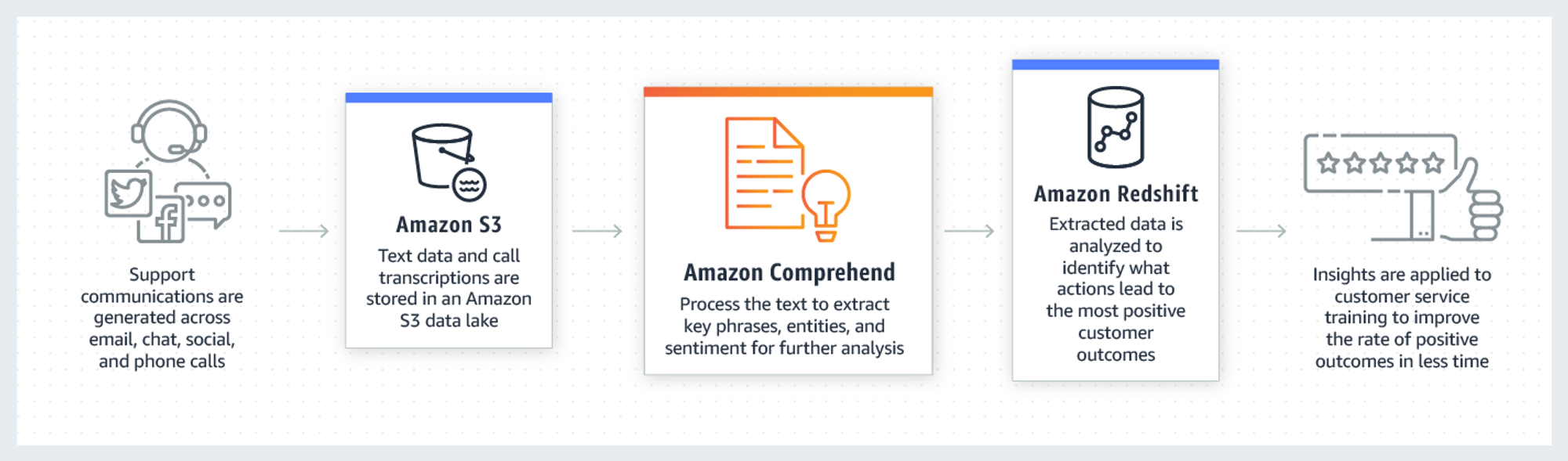 - Amazon QuickSight: Comprehend 분석 결과를 QuickSight에서 시각화하고 대시보드를 생성할 수 있습니다.