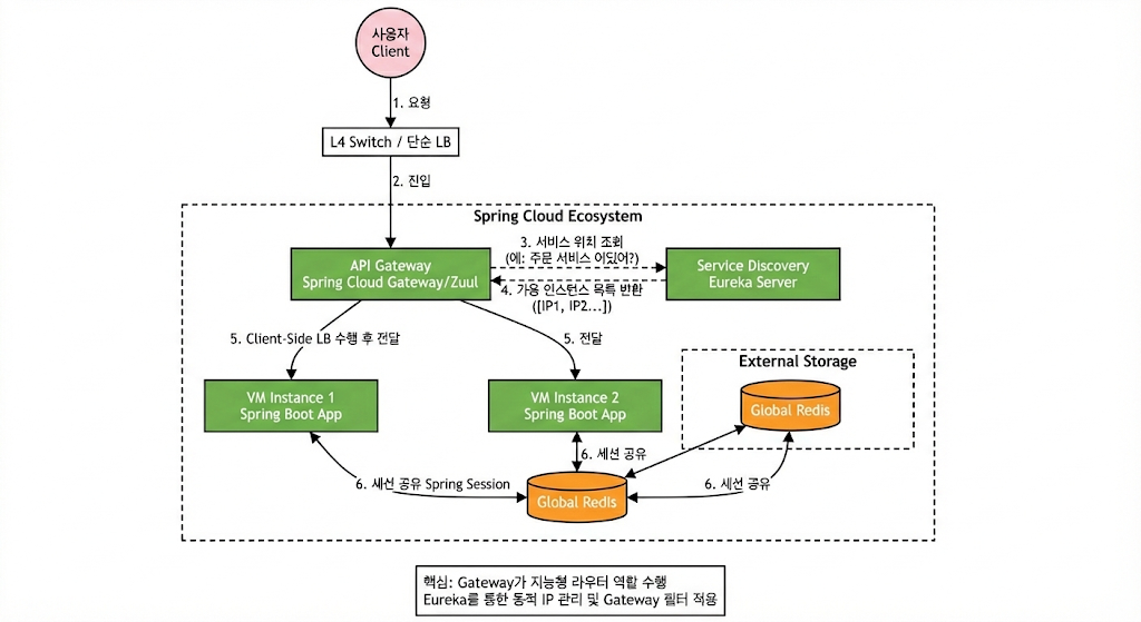 - Gateway 레벨 제어 (보조): 앞단에 Spring Cloud Gateway나 Zuul이 있다면, 세션 ID 기반 해싱 필터로 특정 사용자를 특정 VM으로 라우팅할 수 있지만, 어디까지나 보조적인 수단일 뿐입니다.