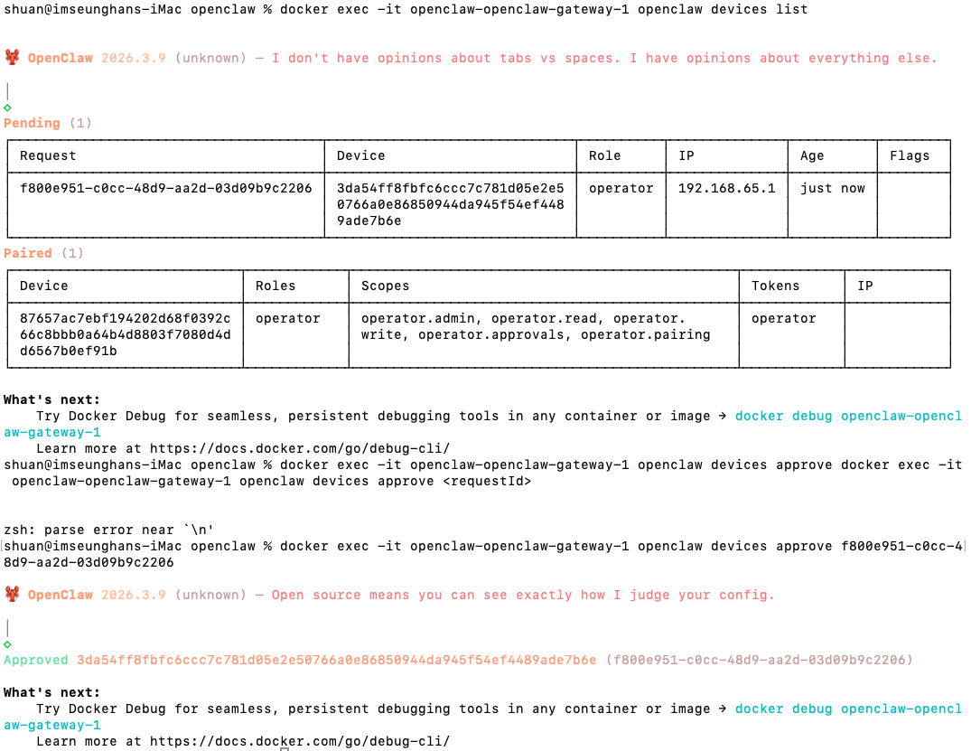 docker exec -it openclaw-openclaw-gateway-1 openclaw devices approve <requestId>