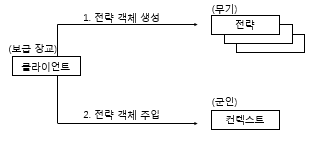클라이언트가 전략을 생성해 전략을 실행할 컨텍스트에 주입하는 패턴