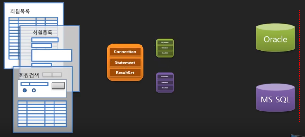 즉 프로그래머는 Oracle을 사용하고있다가 MS SQL로 DBMS(Database Management System)를 변경하더라도