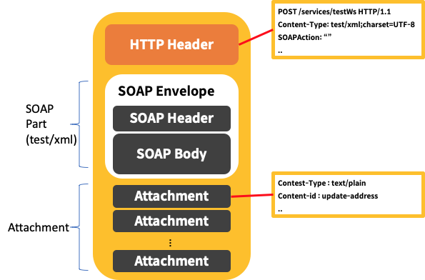 SOAP은 통신에 중립적인 구조로 설계되어 있어 부수적인 메시징 정보를 또 포함하고 있다.