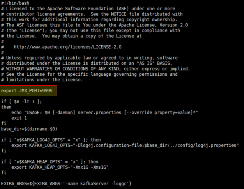아래와 같이 kafka-server-start.sh 파일에 export JMX_PORT=9999 추가