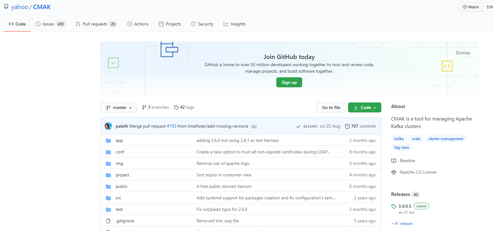 - URL: https://github.com/yahoo/CMAK/releases