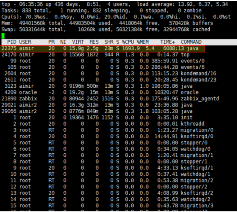 a) 서버 상태 점검: top 명령어를 이용하여 CPU 를 많이 차지 하는 프로세스 유무 점검