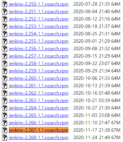 a) 해당 rpm 패키지((jenkins-2.267-1.1.noarch))를 인터넷에서 검색(googling)하여 다운로드 받는다. (https://mirror.esuni.jp/jenkins/redhat/)