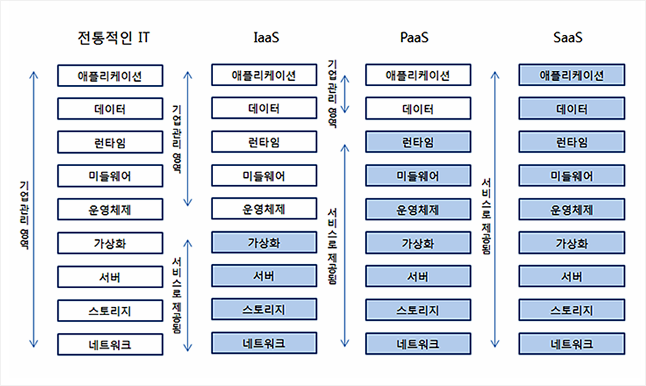 Iaas는 가상 인프라 위주로 서비스 제공하여 인프라를 제외한 나머지 환경은 사용자가 자유롭게 구축할 수 있다.