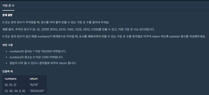 가장 큰 수 #정렬 #level2