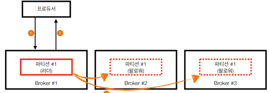 - 즉, 리더 파티션에 저장되고 해당 브로커가 죽으면 데이터 유실