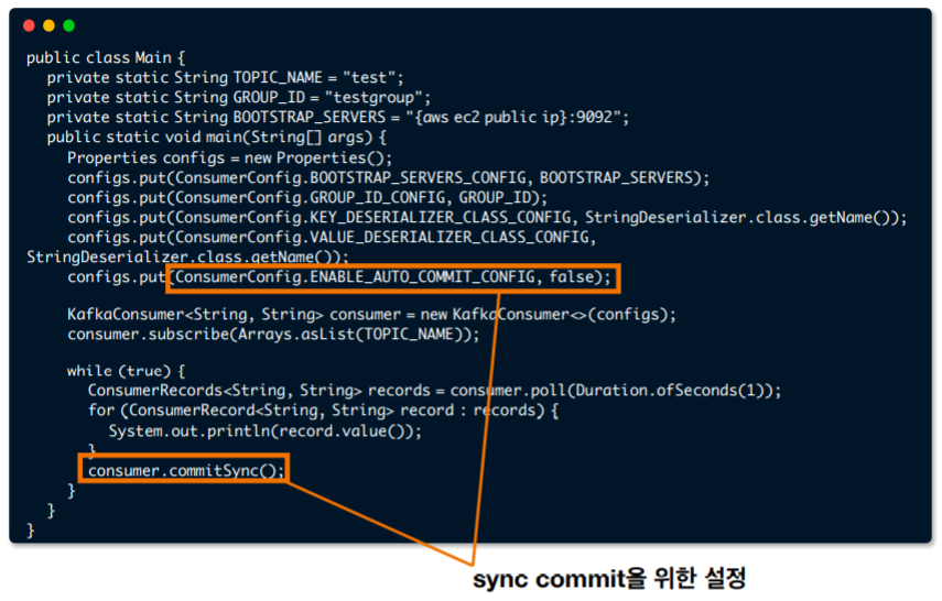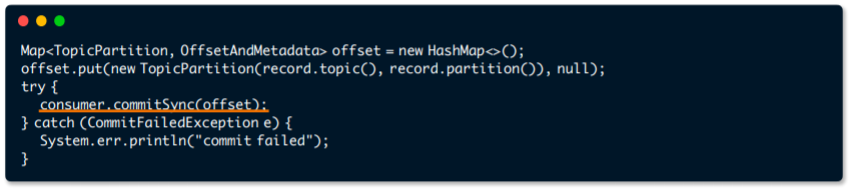 → Kafka consumer의 commitSync(), commitAsync() 사용