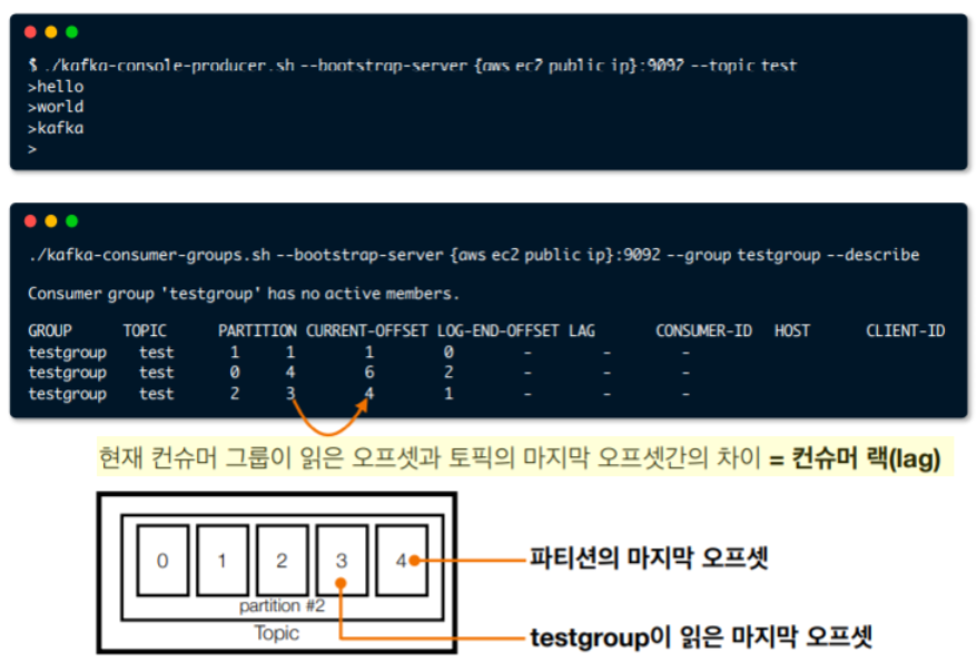 - LOG-END-OFFSET: producer쪽에서 마지막으로 생성한 레코드의 offset