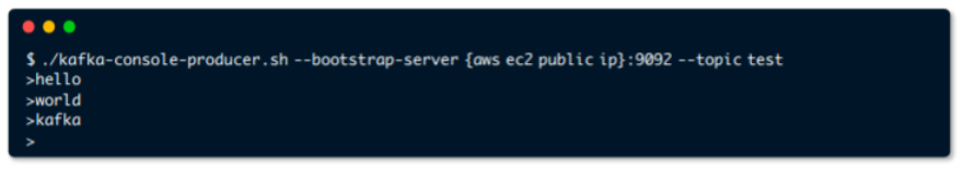 $ bin/kafka-console-producer.sh --bootstrap-server localhost:9092 --topic topic_name