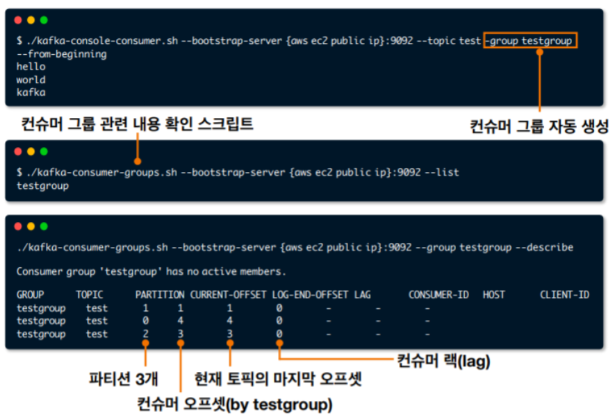 컨슈머그룹 조회, 컨슈머 오프셋 확인, 수정