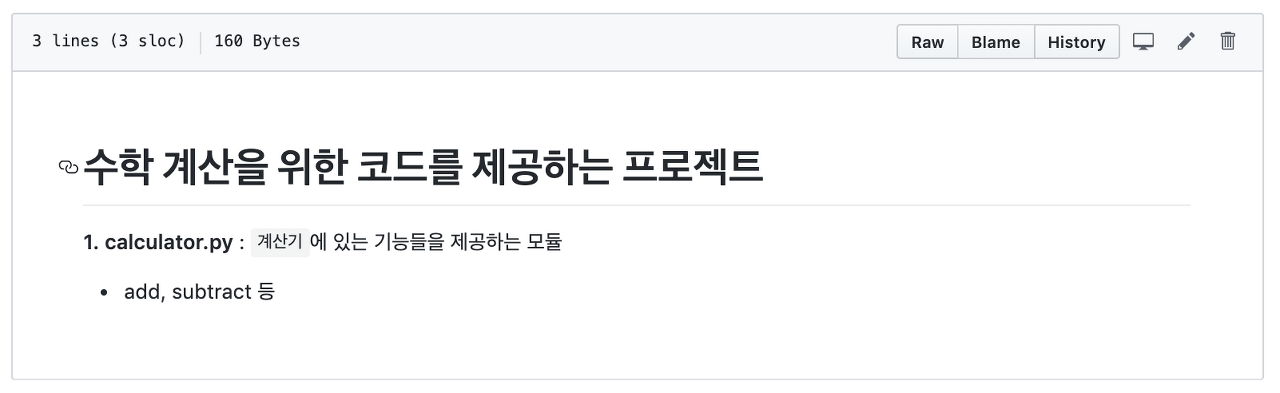 그러고보니 저도 MathTool 디렉토리에 README.md 파일을 추가했었죠? 잠깐 저의 README.md 파일을 살펴볼게요.