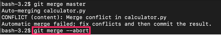 하지만 꼭 이렇게 Conflict를 해결하지 않고, 일단 merge 자체를 취소하는 방법도 있습니다.