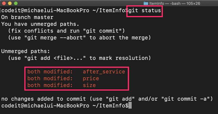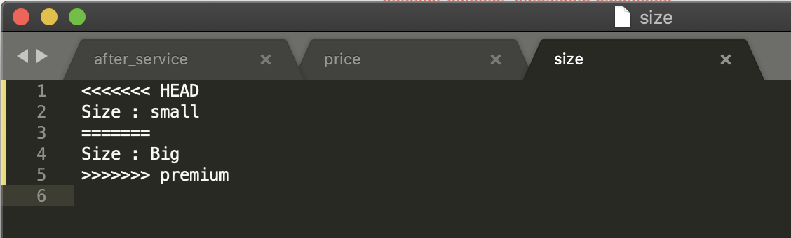 자, 이제 나머지 두 파일(after_service, size)도 모두 conflict를 해결하고 나서, 늘 하던대로