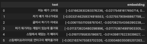 - 안녕하세요 > (문장 임베딩) > 벡터: [0.88, 0.13, 0.754, -0.42]