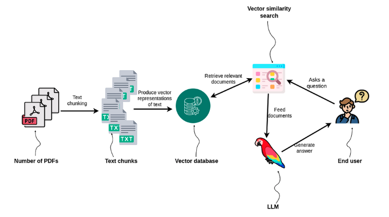 - RAG๋ ๊ธฐ์กด์ ๋ฌธ์๋ ๋ฐ์ดํฐ๋ฒ ์ด์ค์์ ๊ด๋ จ ์ ๋ณด๋ฅผ ๊ฒ์ํ์ฌ, ํด๋น ์ ๋ณด๋ฅผ ๊ธฐ๋ฐ์ผ๋ก ๋ต๋ณ์ ์์ฑํ๋ ๋ฐฉ์์