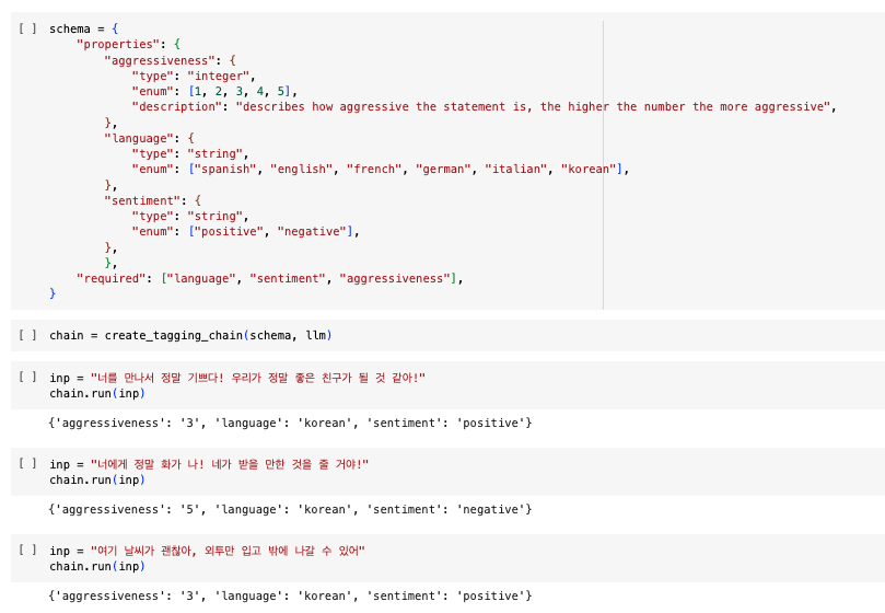 - create_tagging_chain: 리뷰 텍스트에서 긍정적인 부분과 부정적인 부분을 추출하는 데 사용
