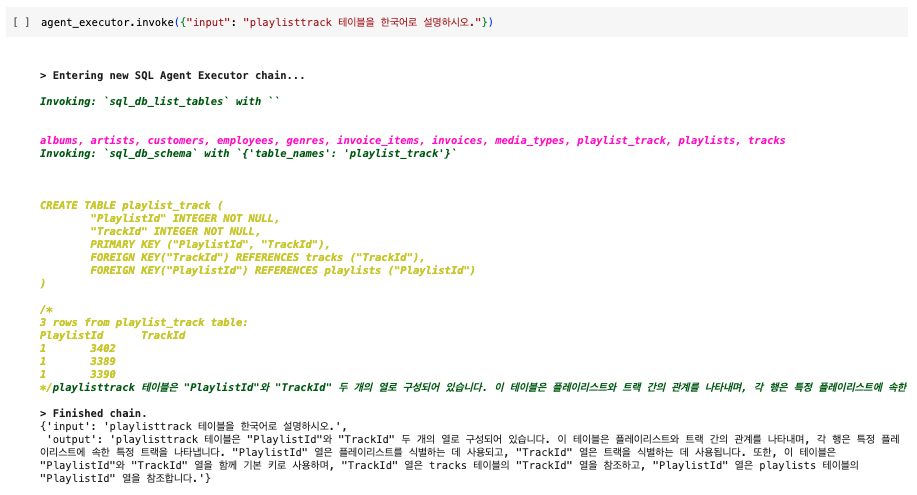 - create_sql_query_chain: ๋ญ์ฒด์ธ์์ ์ ๊ณตํ๋ ํจ์๋ก, ์ฌ์ฉ์๊ฐ ์ ๊ณตํ ํ๋กฌํํธ์ SQL ๋ฐ์ดํฐ๋ฒ ์ด์ค๋ฅผ ์ฌ์ฉํ์ฌ SQL ์ฟผ๋ฆฌ๋ฅผ ์์ฑํ๋ ์ฒด์ธ์ ๋ง๋๋ ๋ฐ ์ฌ์ฉ๋ฉ๋๋ค.