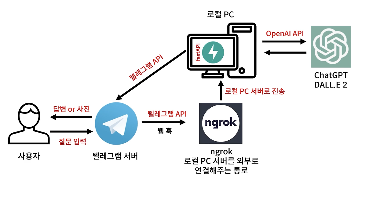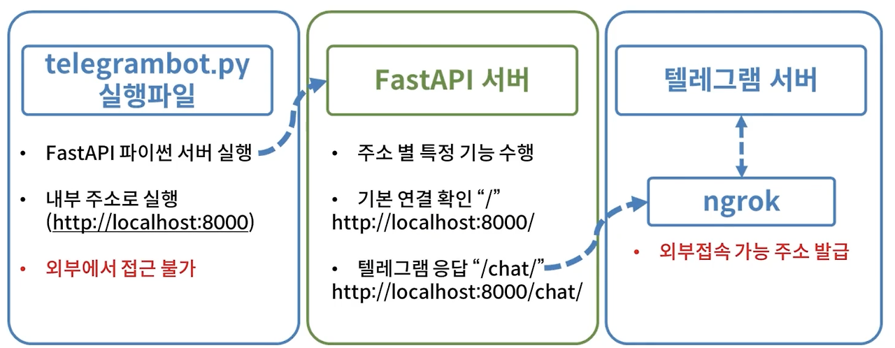 - python script(telegramebot.py)๋ฅผ ์คํํ์ฌ FastAPI ์๋ฒ๋ฅผ ์์ฑํ๋ค.